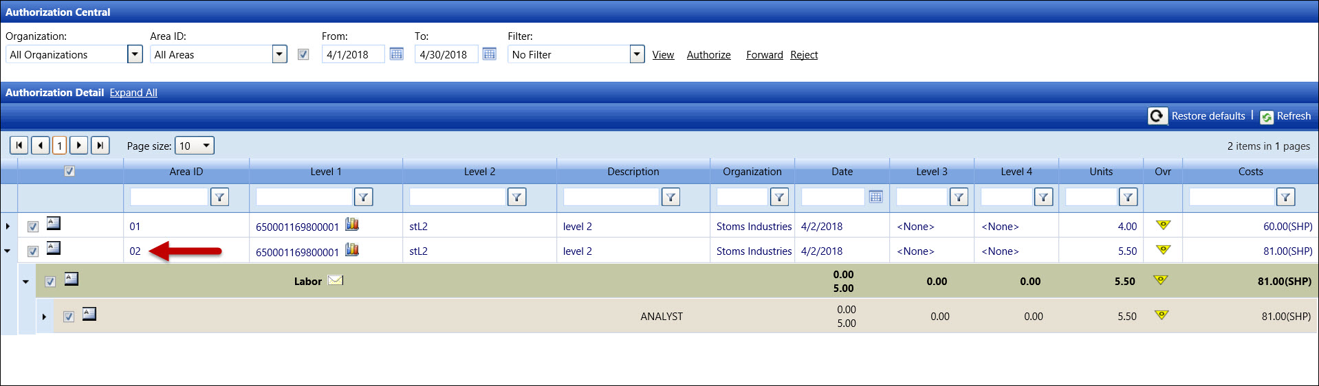 The purpose for the Area ID Forwarding functionality is to allow the Approvers the ability to forward the allocations that are pending authorization to another Area ID.