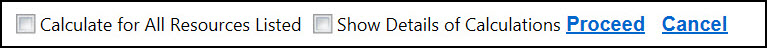 Click the Calc Net link to display the Calculate for All Resources Listed and Show Details of Calculations checkboxes, Proceed and Cancel links.