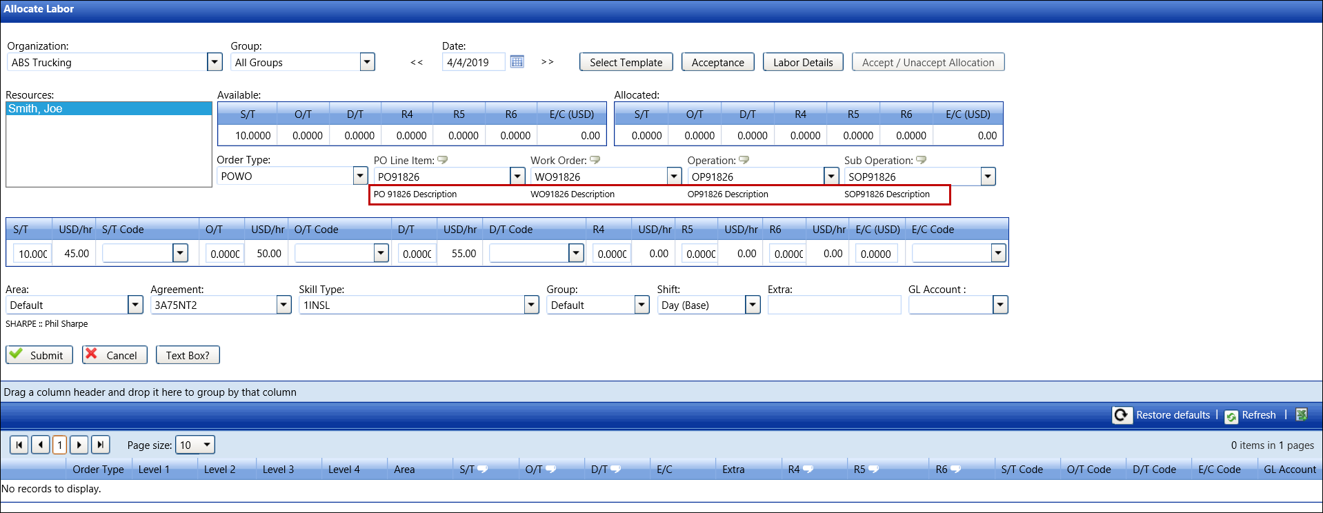Allocate Labor (Allocations > Allocations > Labor Hours)