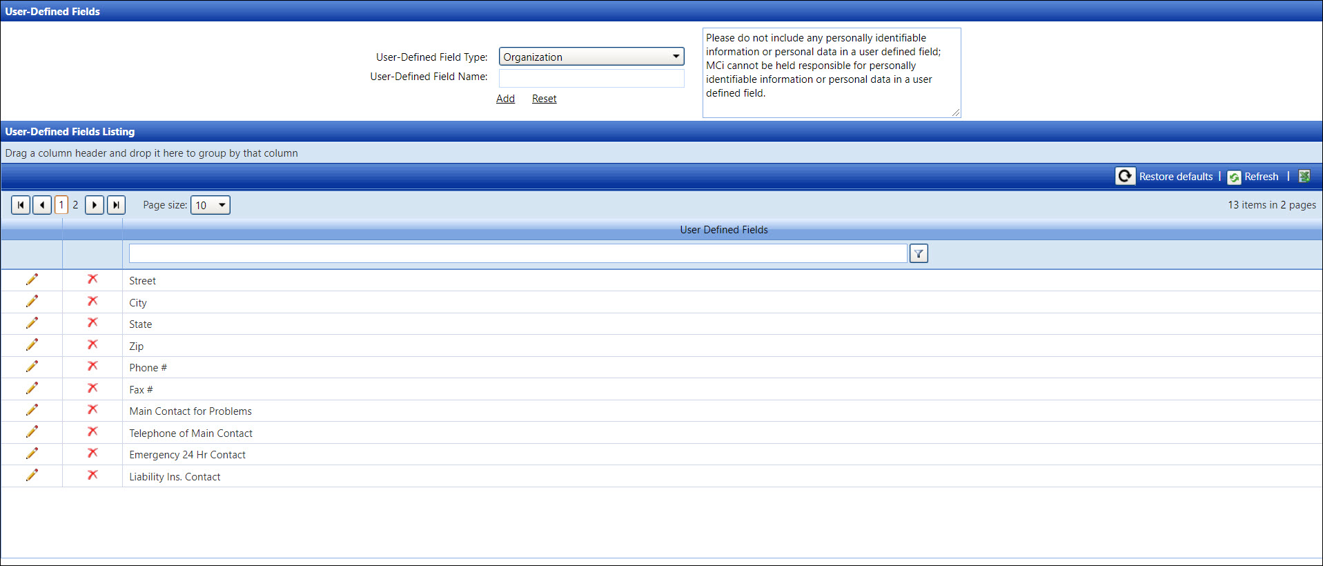 Click Add to save and display a new user-defined field name in the User-Defined Fields Listing.